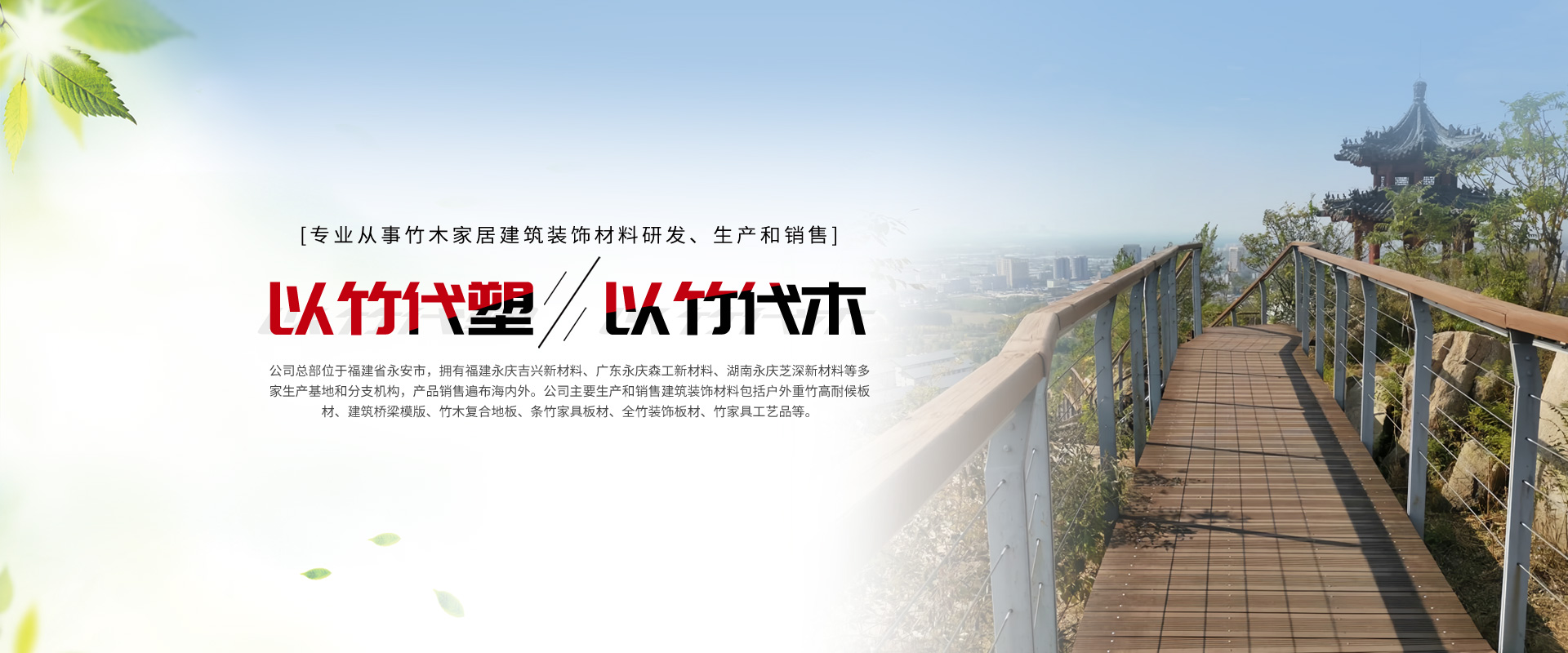 廈門(mén)永慶家居建材有限公司是福建永慶新材科技集團(tuán)公司旗下一家專(zhuān)業(yè)從事竹木家居建筑裝飾材料研發(fā)、生產(chǎn)和銷(xiāo)售的企業(yè)。公司總部位于福建省永安市,擁有福建永慶吉興新材料、廣東永慶森工新材料、湖南永慶芝深新材料等多家生產(chǎn)基地和分支機(jī)構(gòu),產(chǎn)品銷(xiāo)售遍布海內(nèi)外。公司主要生產(chǎn)和銷(xiāo)售建筑裝飾材料包括戶(hù)外重竹高耐候板材、建筑橋梁模版、竹木復(fù)合地板、條竹家具板材、全竹裝飾板材、竹家具工藝品等。公司注重產(chǎn)品品質(zhì)和創(chuàng)新,引進(jìn)世界先進(jìn)的生產(chǎn)設(shè)備和技術(shù),不斷推出高品質(zhì)、高性能、環(huán)保、節(jié)能的新型竹木建筑裝飾材料,獲得了廣泛的市場(chǎng)認(rèn)可和用戶(hù)信賴(lài)。